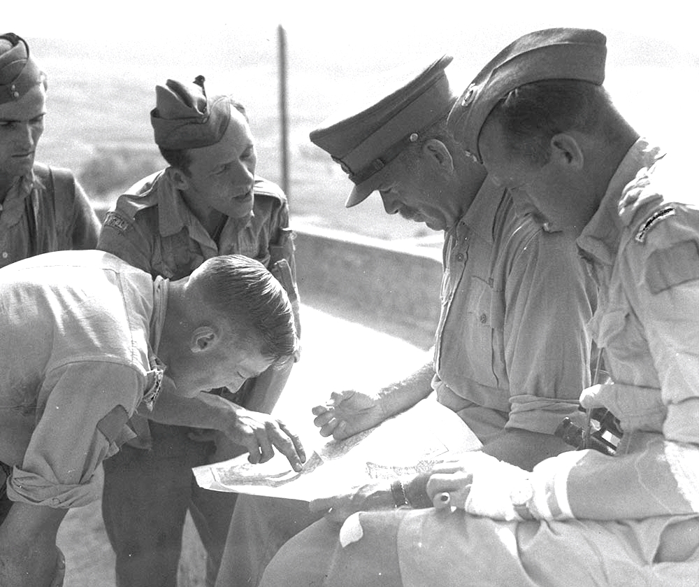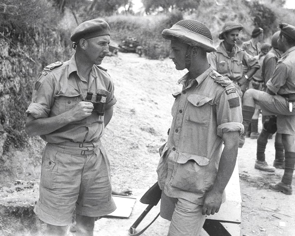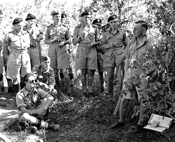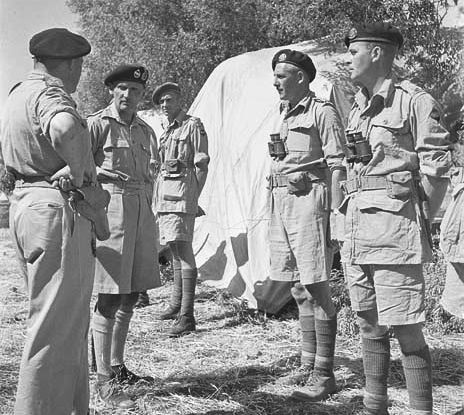 General Montgomery visiting forward positions of most advanced troops and meeting officers holding these positions, 23 July 1943.