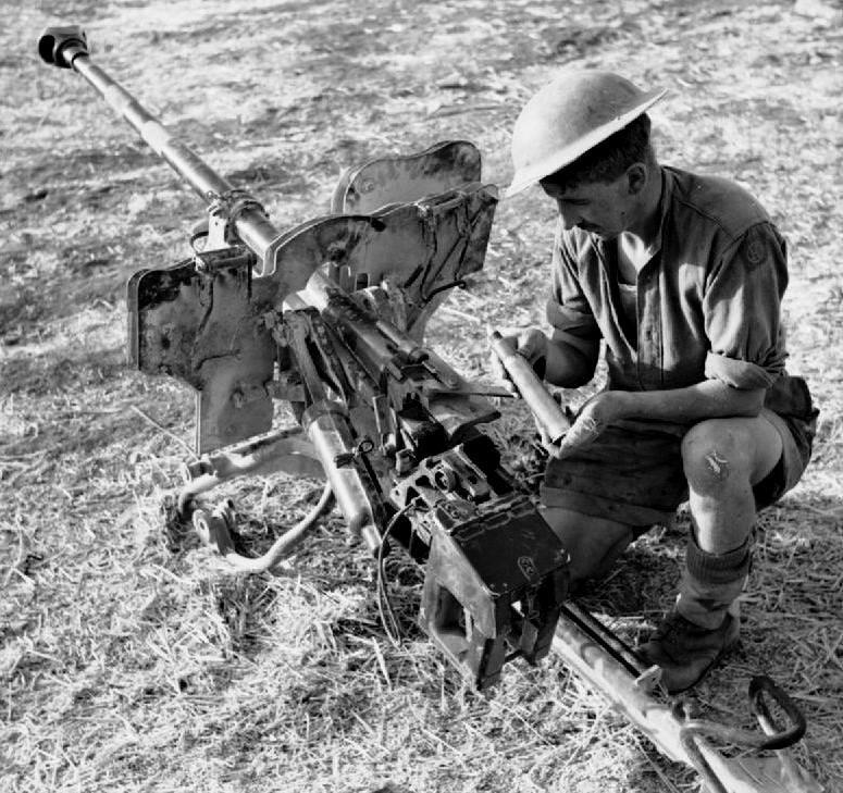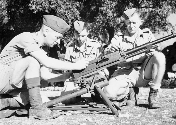 Personnel restoring a captured Italian Breda machine gun, No. 1 Base Reinforcement Depot, near Syracuse, Italy, 11 August 1943.
