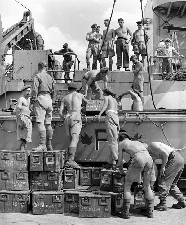 The 1st Canadian Infantry Division and the 1st Canadian Armoured Brigade, under the command of Major-General G.G. Simonds, sailed from Great Britain in late June 1943. En route, 58 Canadians were drowned when enemy submarines sank three ships of the assault convoy, and 500 vehicles and a number of guns were lost. Nevertheless, the Canadians arrived late in the night of 9 July to join the invasion armada of nearly 3,000 Allied ships and landing craft.