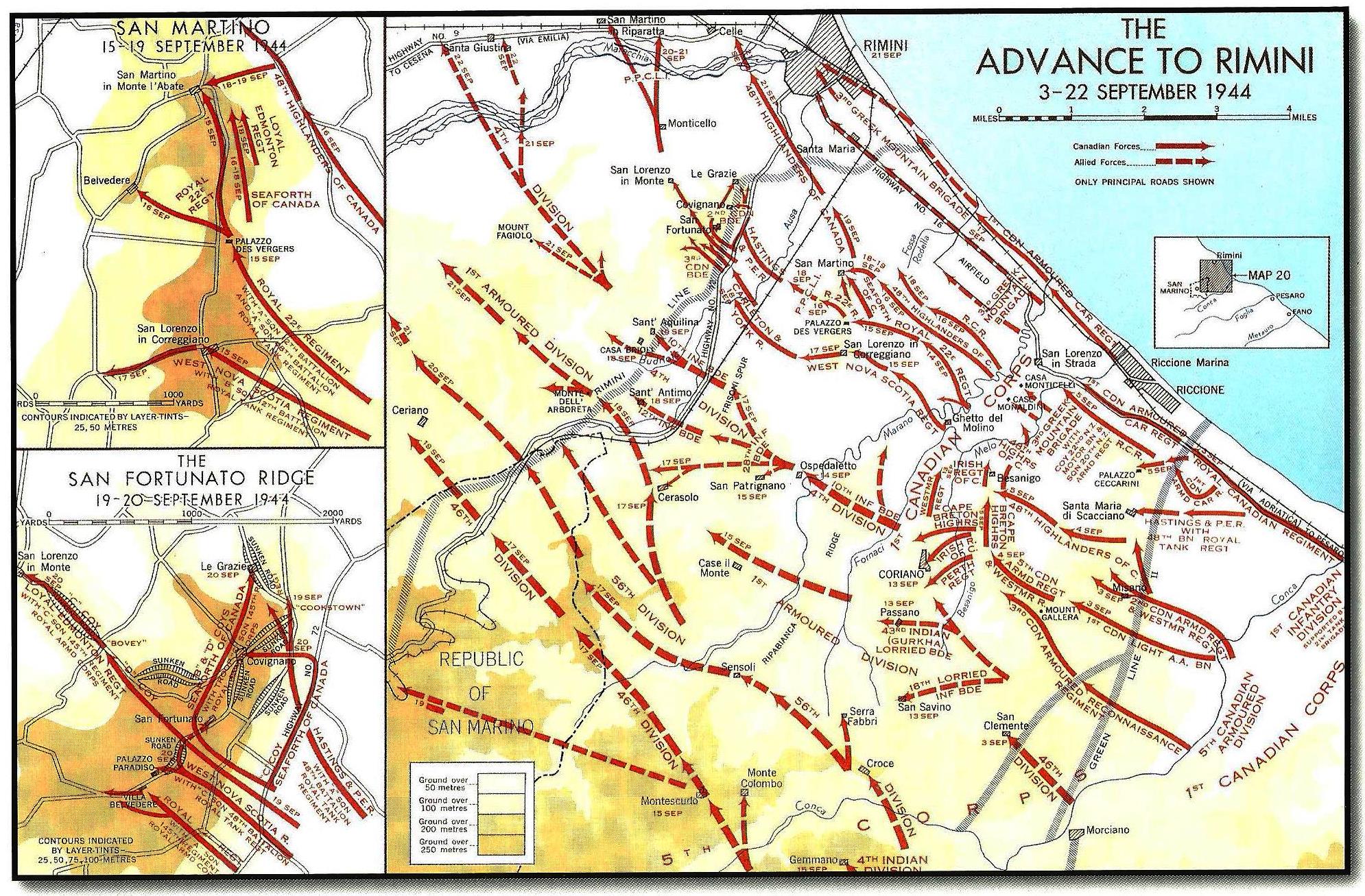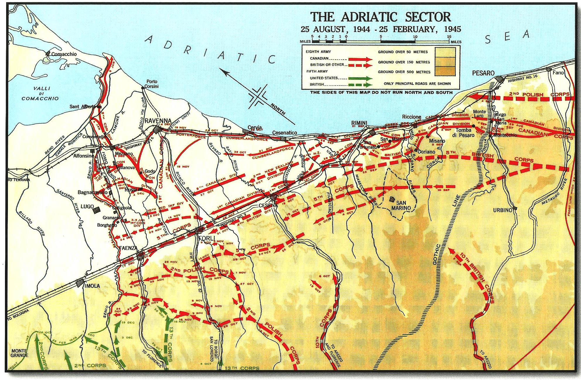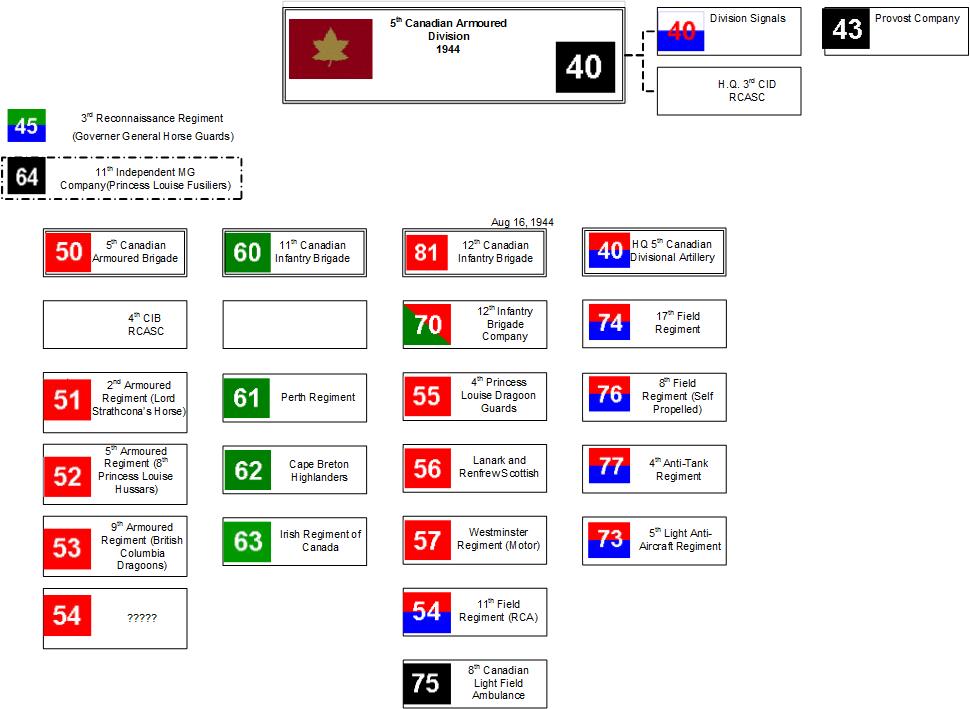 [1] As of 19 August 1944, except for 1st Canadian Special Service Battalion which had left Italy to fight in Southern France.