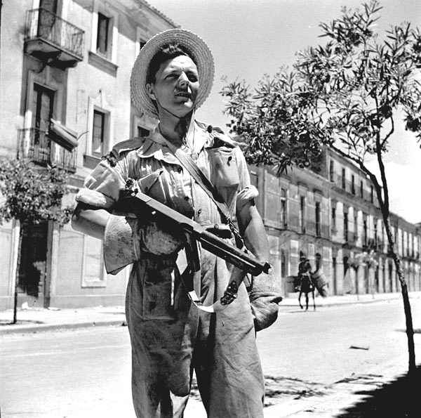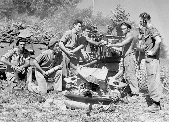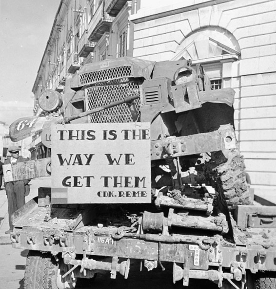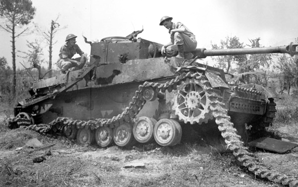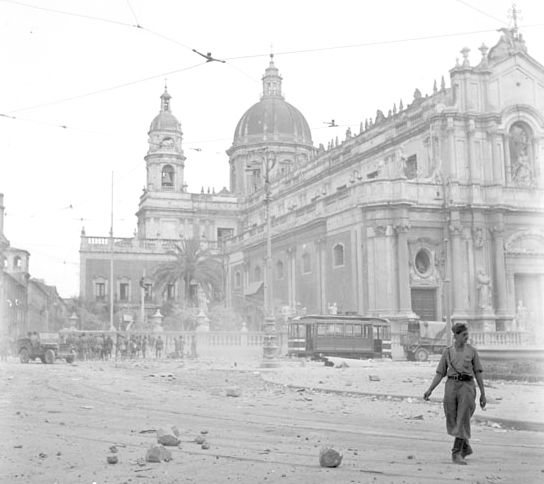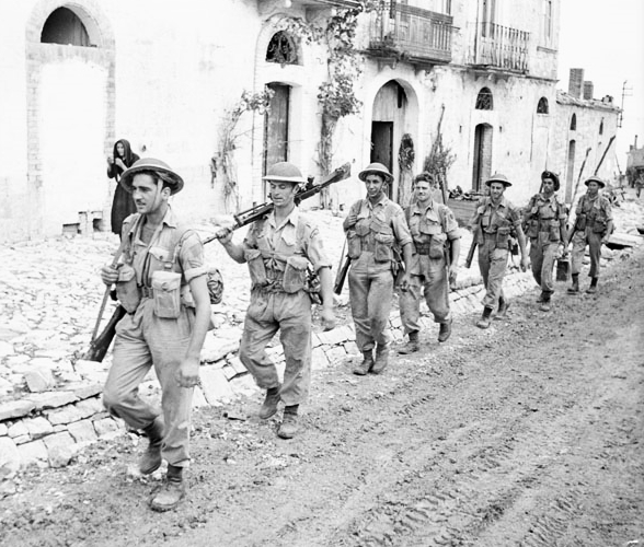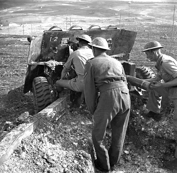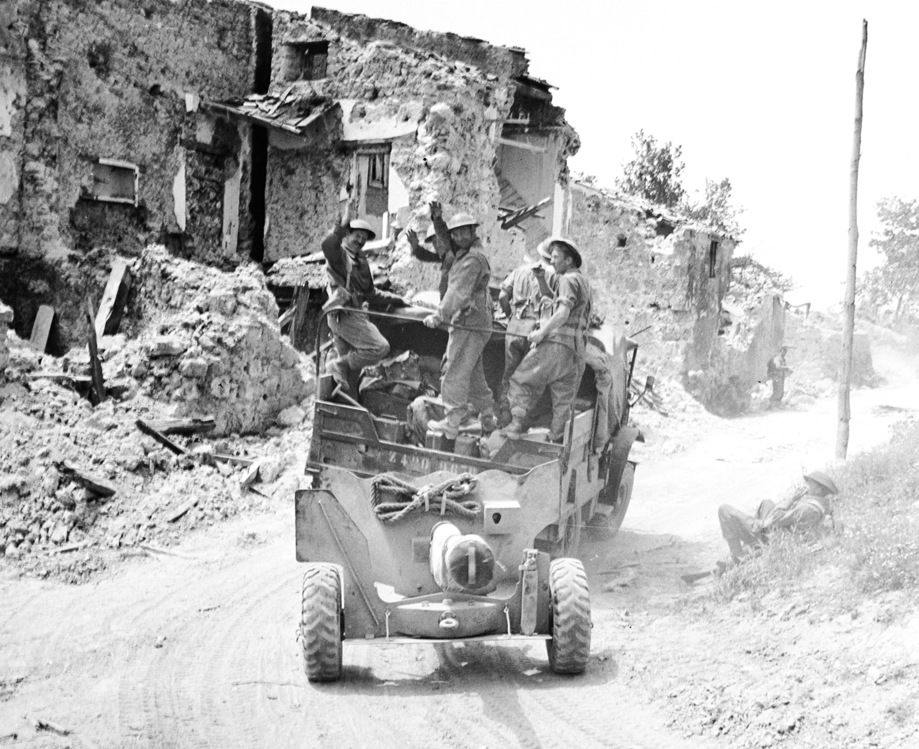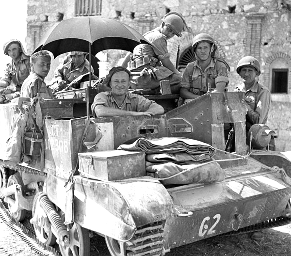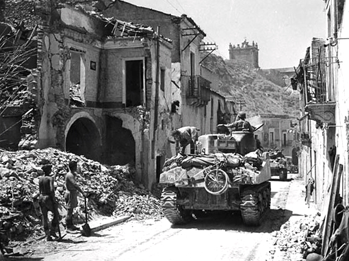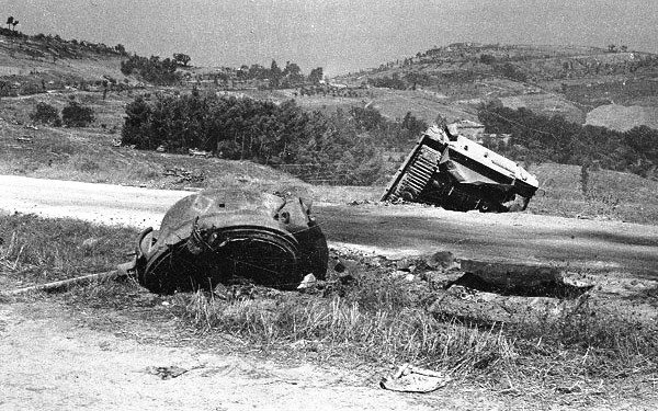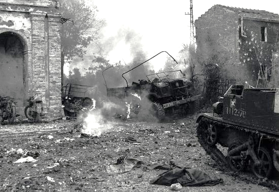 With the Italian army’s rapid collapse, several German divisions hurriedly established a series of defensive lines. Canadian troops encountered such a line on 15 July near Grammichele. Enemy anti-tank guns knocked out one tank, three carriers, and several trucks before the Canadians rallied and carried the town. Having inflicted 25 Canadian casualties, the Germans withdrew.