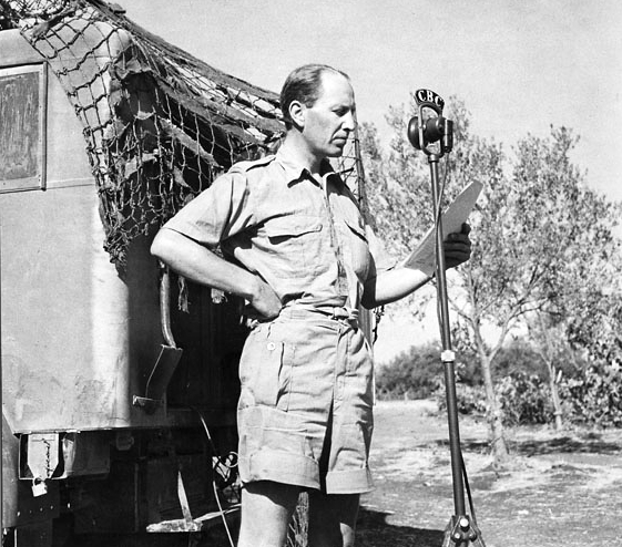 Matthew Halton at the CBC microphone, Italy, 20 August 1943.