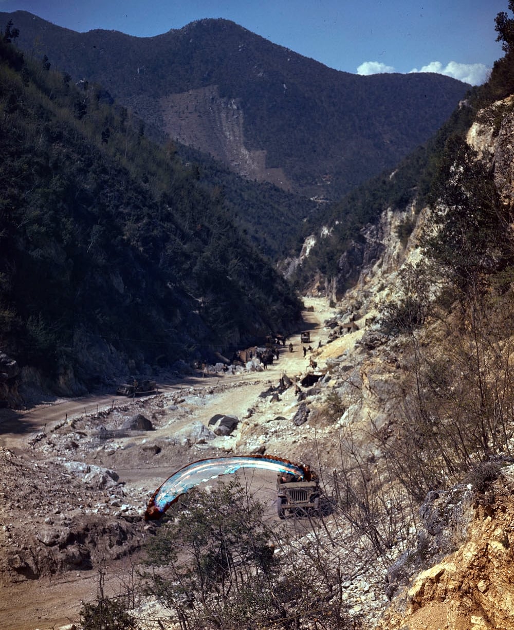 A Canadian-built Sexton 25-pounder self-propelled gun negotiates a hairpin bend on a mountain road near Mondaino during the advance through the Gothic Line, Italy, 6 September 1944.