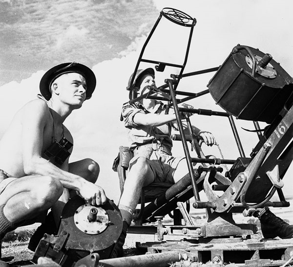Gunner Howard Potter has a shave near his 40mm Bofors anti-aircraft gun, while other members of the crew scan the skies over Ortona, January 1944.