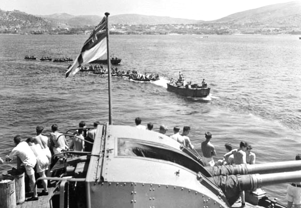 Canadian troops disembarking from HMT Nea Hella, Philippeville, Algeria, 10 July 1943.