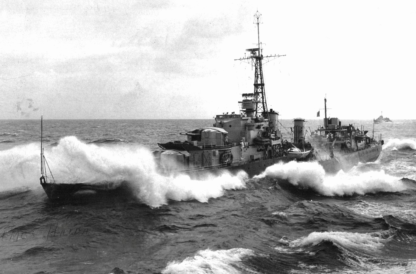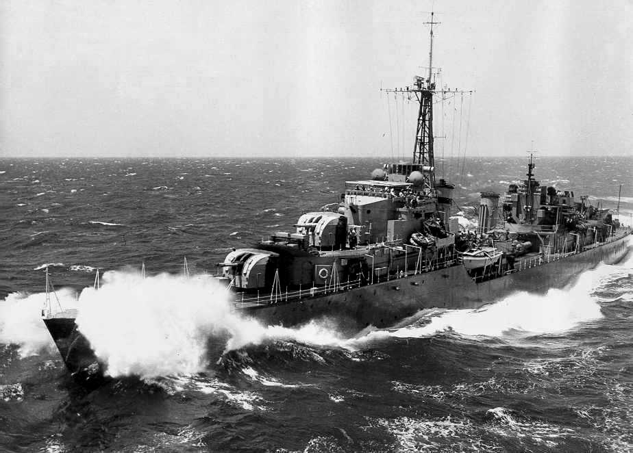 HMCS Sioux (R64) (V-class).  Laid down as HMS Vixen, she was commissioned HMCS Sioux at Cowes, Isle of Wight, on 21 Feb 1944, and assigned to the 26th Flotilla of the British Home Fleet.  She took part in escorting carrier attacks against the Tirpitz and against German shipping off Norway, and on 28 May 1944 left Scapa for Portsmouth for D-Day duties, bombarding shore targets on the Normandy coast.  Returning to Scapa Flow in Jul 1944, she resumed her previous occupation and also escorted four convoys each way to and from Murmansk.