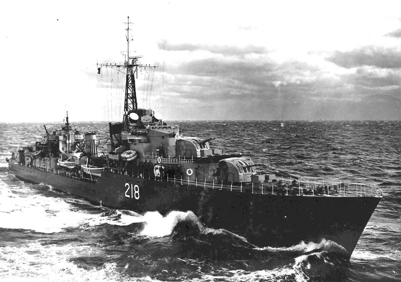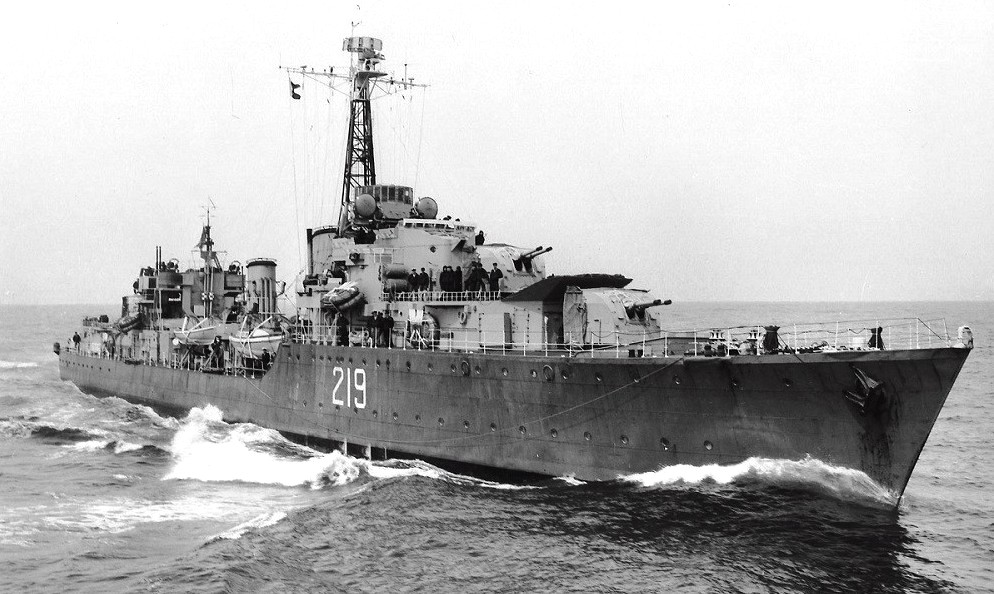 HMCS Athabaskan (219), off the Korean coast, ca 1950.