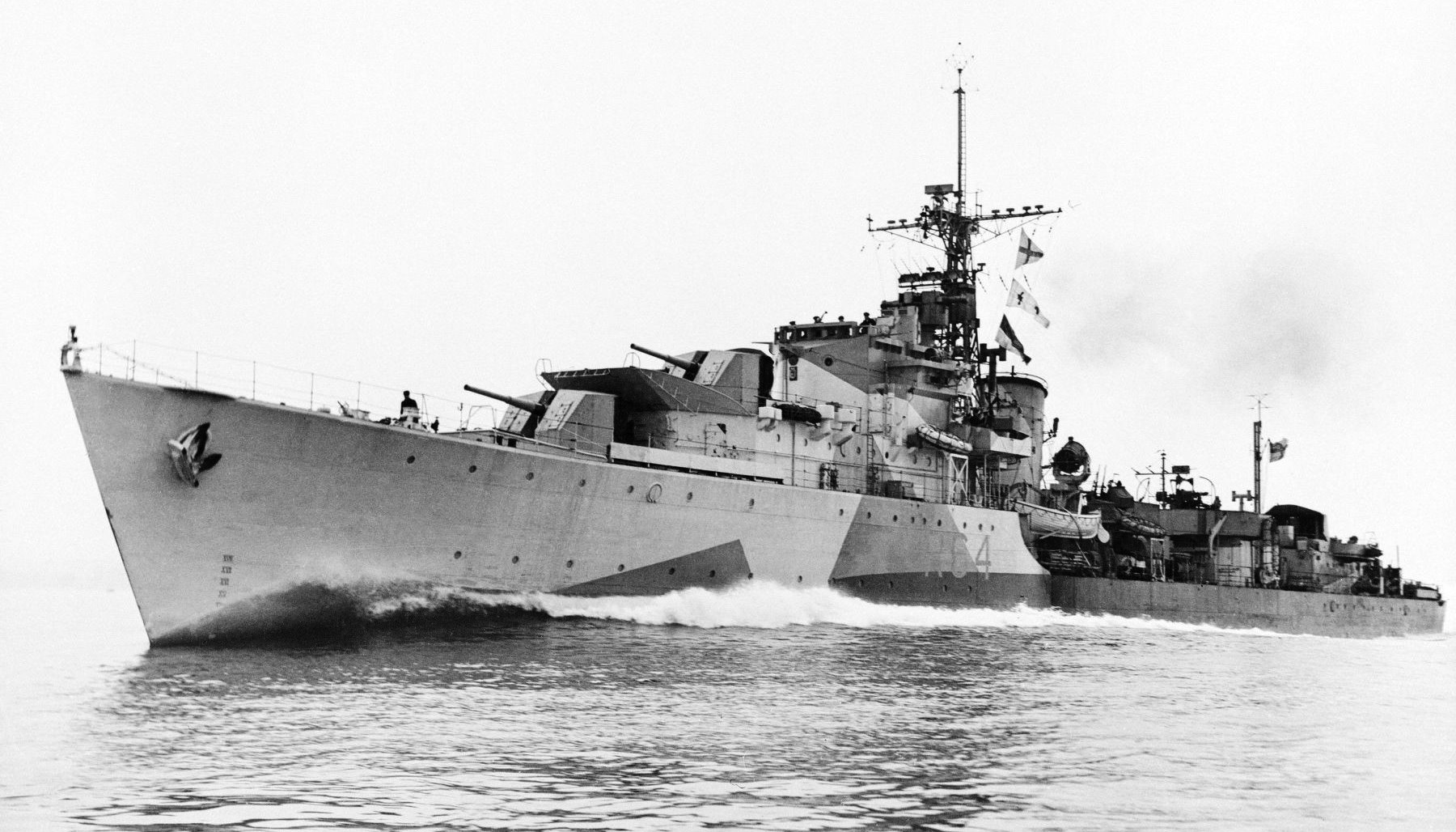 HMCS Haida (G63), 16 March 1949.  She gained entry in the Trainbusters Club, destroying a Chinese supply train and engine off Tanch’on, South Korea.