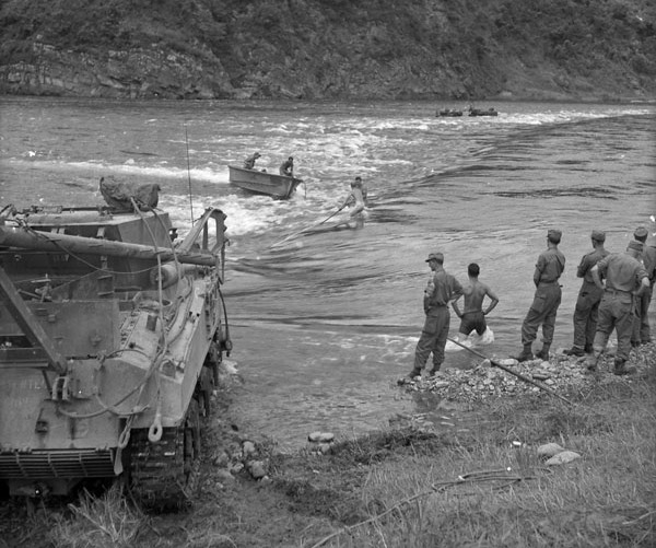 Canadian recovery operations on the Imjim River, Korea, 25 July 1951.