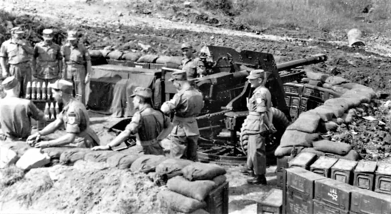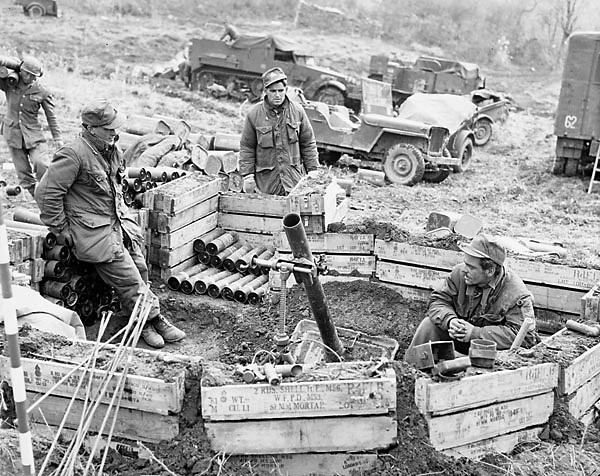 The morning after a hard fought battle, a Royal 22nd Regiment mortar platoon is ready to fire, November 1951.