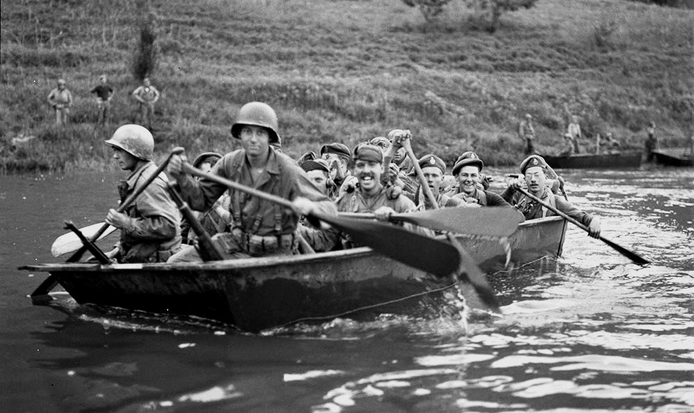 Personnel of the 2nd Battalion, PPCLI, crossing the Imjin River in assault boats, Korea, 6 June 1951.