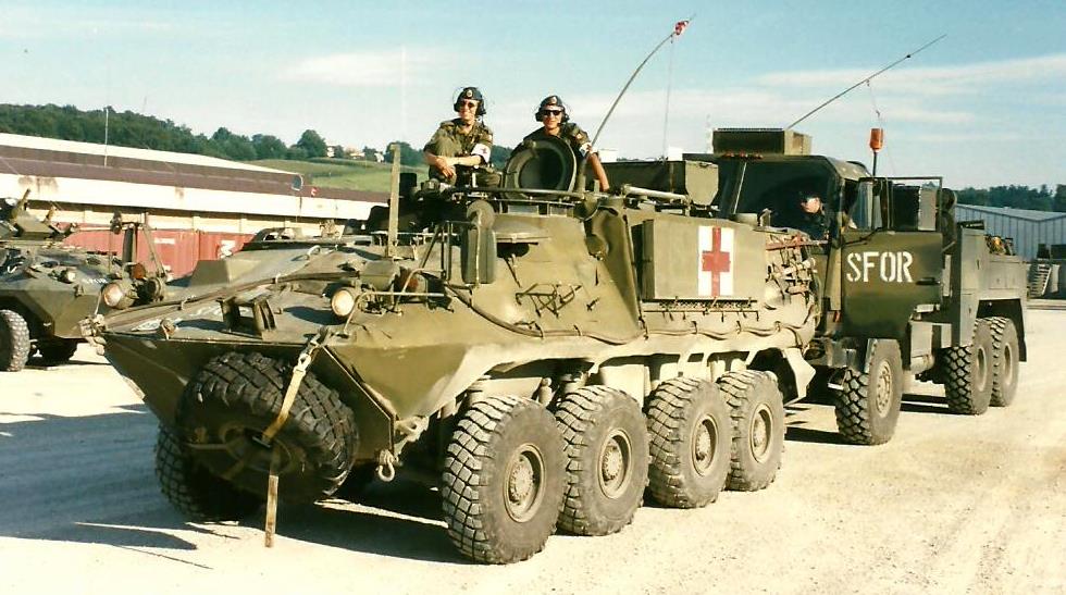 Light Armoured Vehicle II (LAV II) Bison armoured personnel carrier (APC), Velika Kladusa, Bosna-Herzegovina, July 1997.