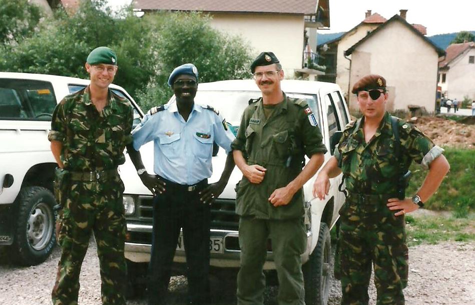 UK Maj Andrew Perry, UN LCol from Senegal, CA Maj Hal Skaarup, UK Maj Julian Moir, Pale, Bosnia Herzegovina.