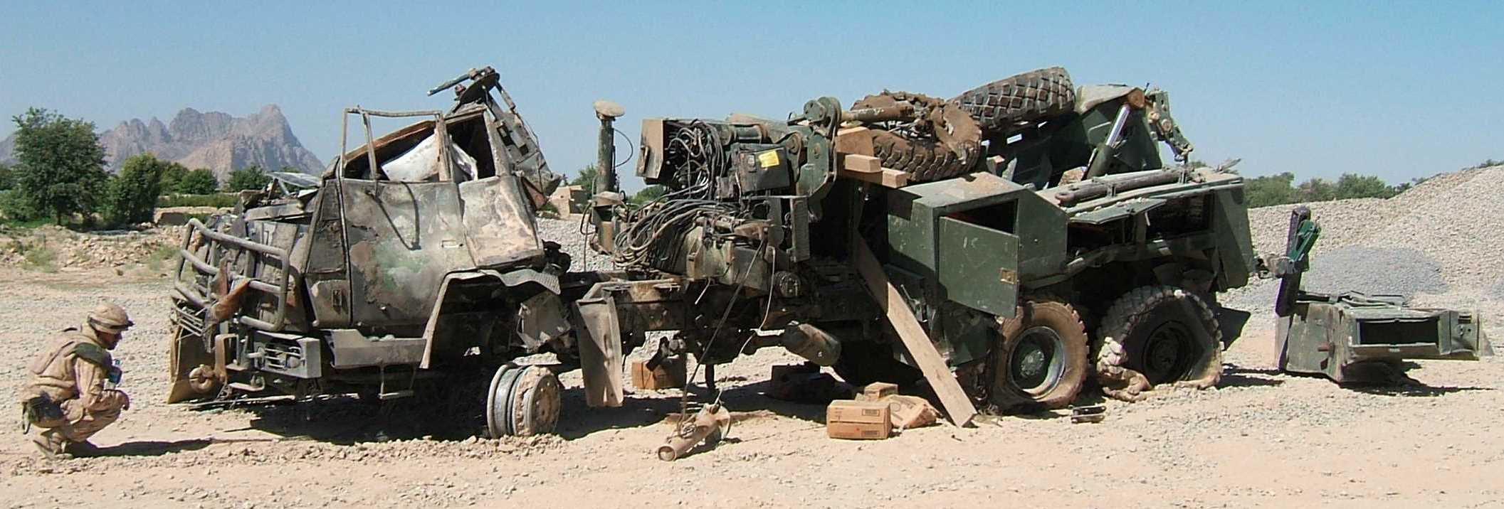 The driver of this HLVW survived the blast from an IED, and took the photo.
