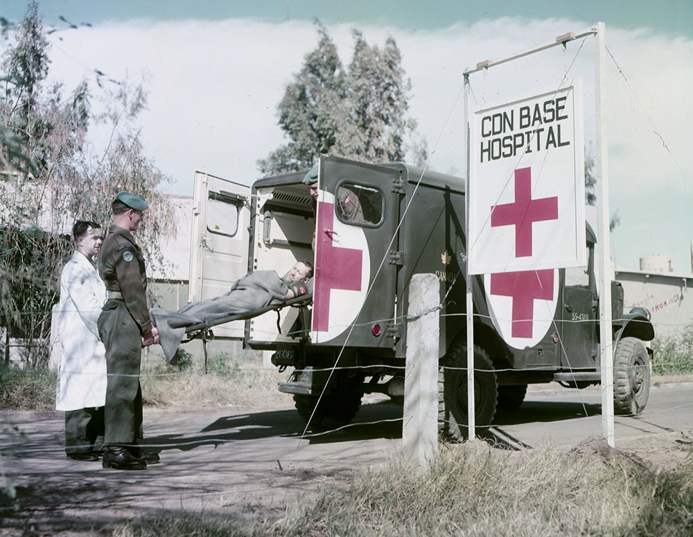 Stretcher Bearers Unload Casualty At a Canadian Base Hospital in Abu Sueir, Egypt, c1965.