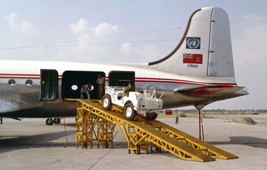 On 13 March 1964 the Royal Canadian Air Force began taking troops and supplies to Cyprus. The Canadians faced a great challenge there. It was difficult to keep the peace where many small groups of Turks lived in the larger Greek population. The United Nations forces needed their soldier skills, but also the ability to diffuse day-to-day disagreements between the two sides. Because of situations like this, it is often said “peacekeeping is not a soldier’s job, but only a soldier can do it.”