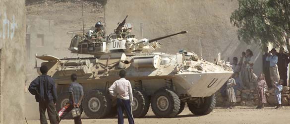 Canadian Armed Forces light armoured vehicle on patrol in Adi Ugri, Eritrea on January 23, 2001.