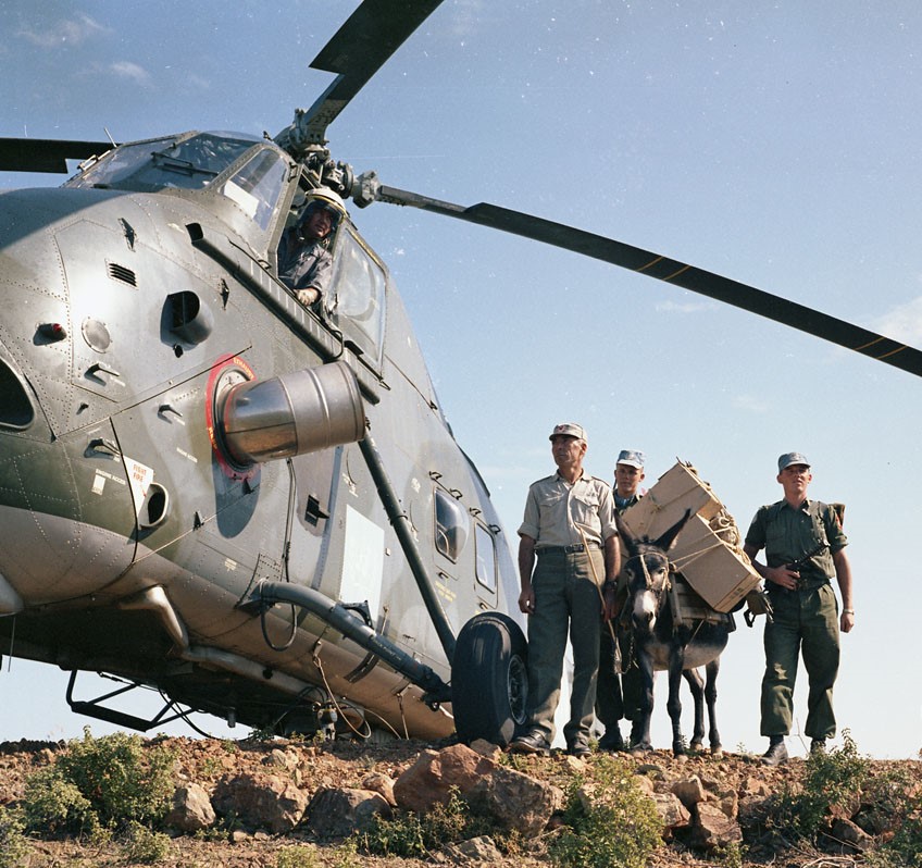 RCHA members with a British Westland Wessex helicopter in Cyprus, c1965.