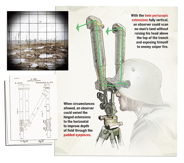 The 8- to 10-power Zeiss Scherenfernrohr prism binoculars enabled observers to track enemy movements without putting themselves in the direct line of fire.