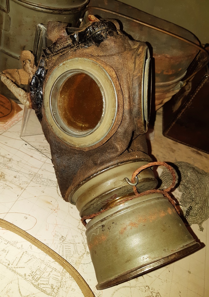 The main German gas mask of the First World Warwas the Lederschutzmaske 1917, which featured a rubberized fabric mask witheyepieces and a separate cylindrical screw-fit filter that could be changedonce its filling become ineffective. This mask was produced in three sizes andwas initially carried in a cloth bag.