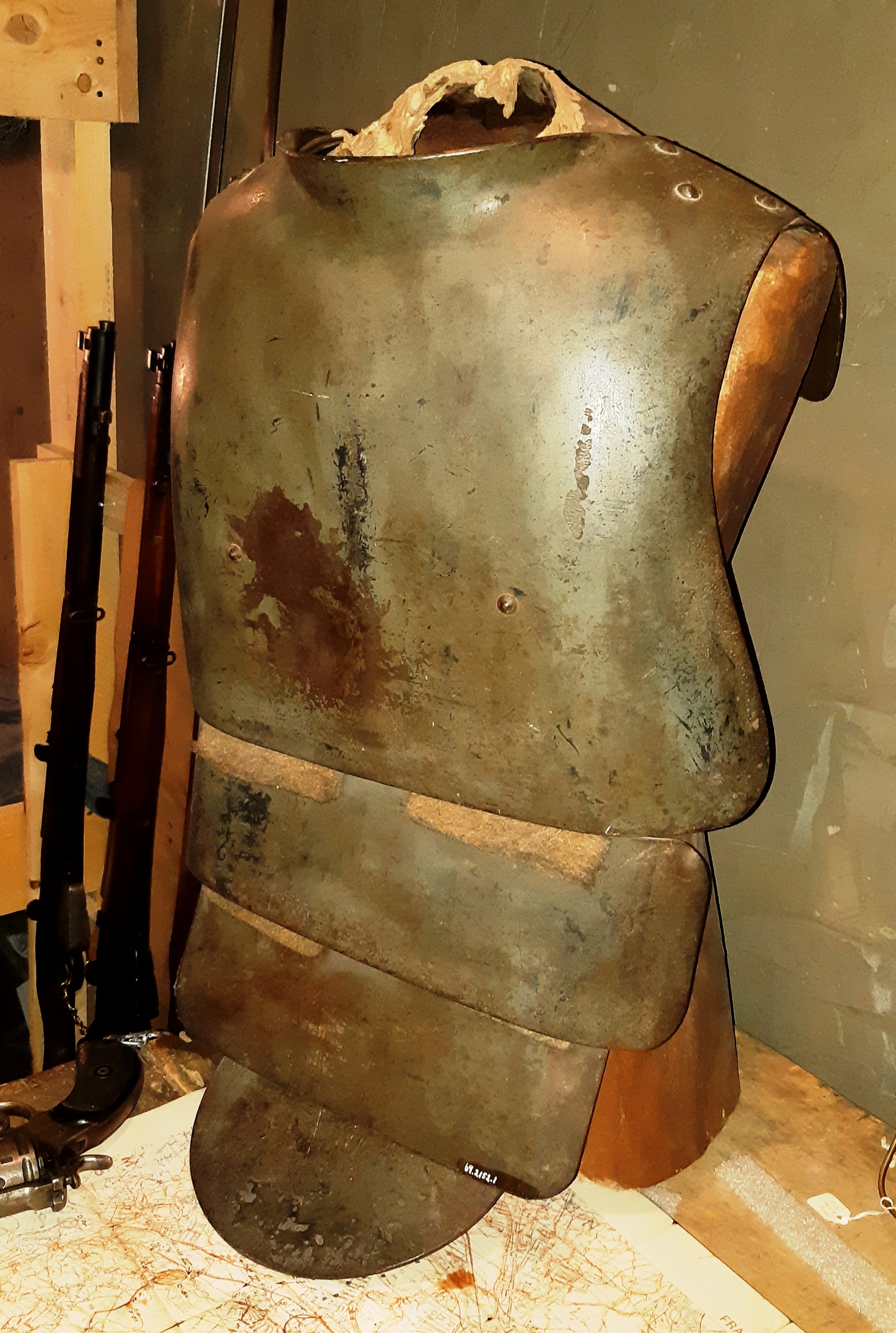 German First World War Anti-shrapnel Body Armour (Sappenpanzer), on display in the FRM’s First World War trench exhibit on the 2nd floor.
