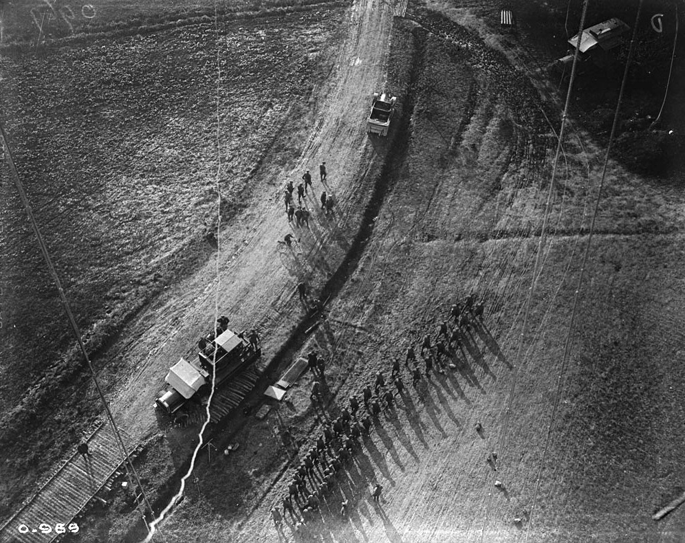 Kite balloon view of the trench lines around Arras, Nov 1917.