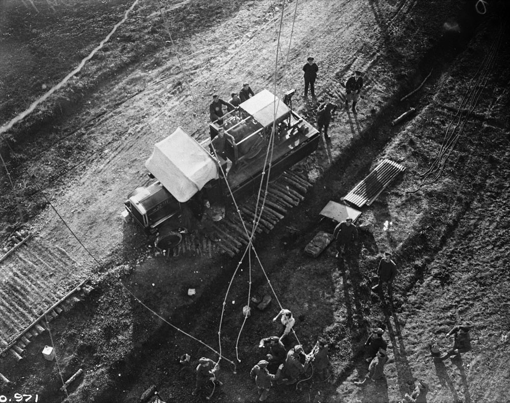 Kite balloon landing behind Canadian lines, Oct 1916.