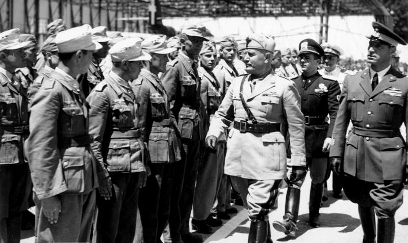 Benito Mussolini inspecting German troops, Sicily, Italy, 25 Jun 1942.