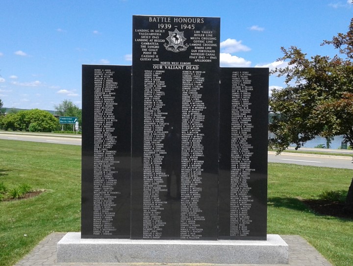 The Carleton York Regiment Memorial in Fredericton. 349 KIA: 28 officers and 321 other ranks severing with The Carleton York Regiment gave their lives in the service of their country while serving in the United Kingdom, Central Mediterranean Theatre and Northwest Europe in the Second World War.
