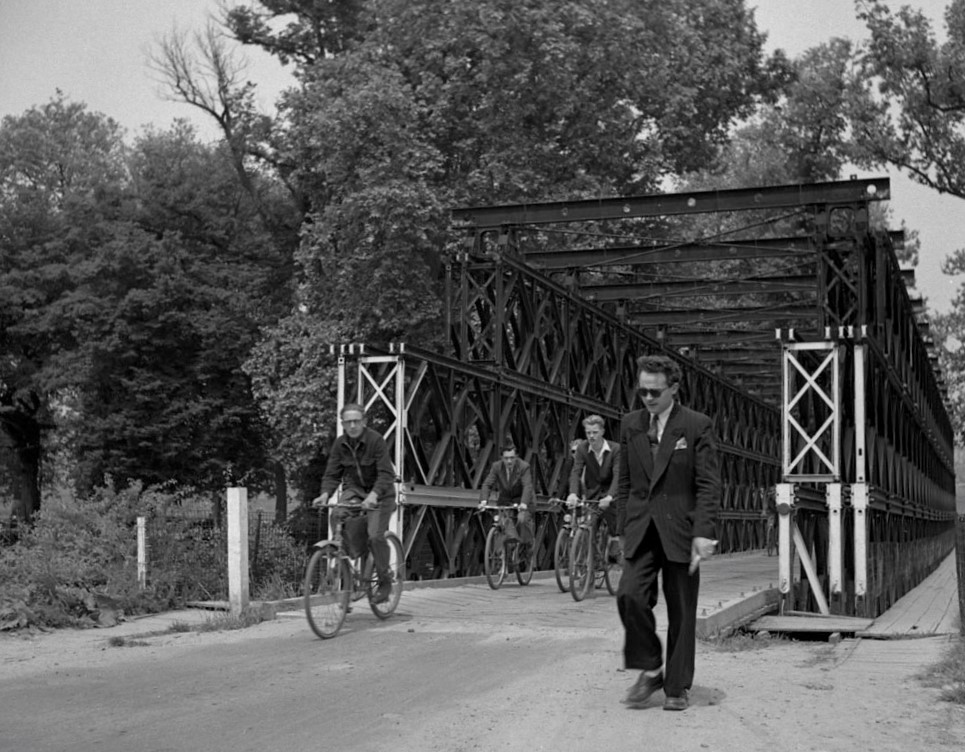 One of the smaller Canadian bridges built over the Orne River at Caen in 1944, still greatly in use, particularily by cyclists from the Caen University in 1949.