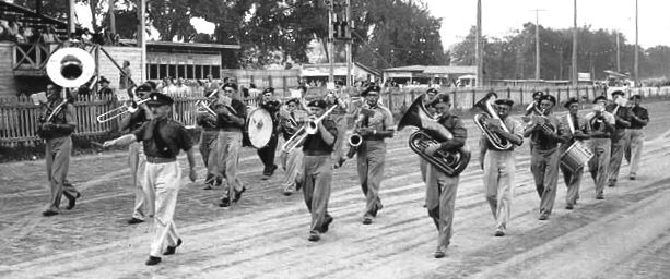 Carleton & York Band, Woodstock, NB, 1953.  The author’s father Aage Skaarup is one of the trumpet players in this band.