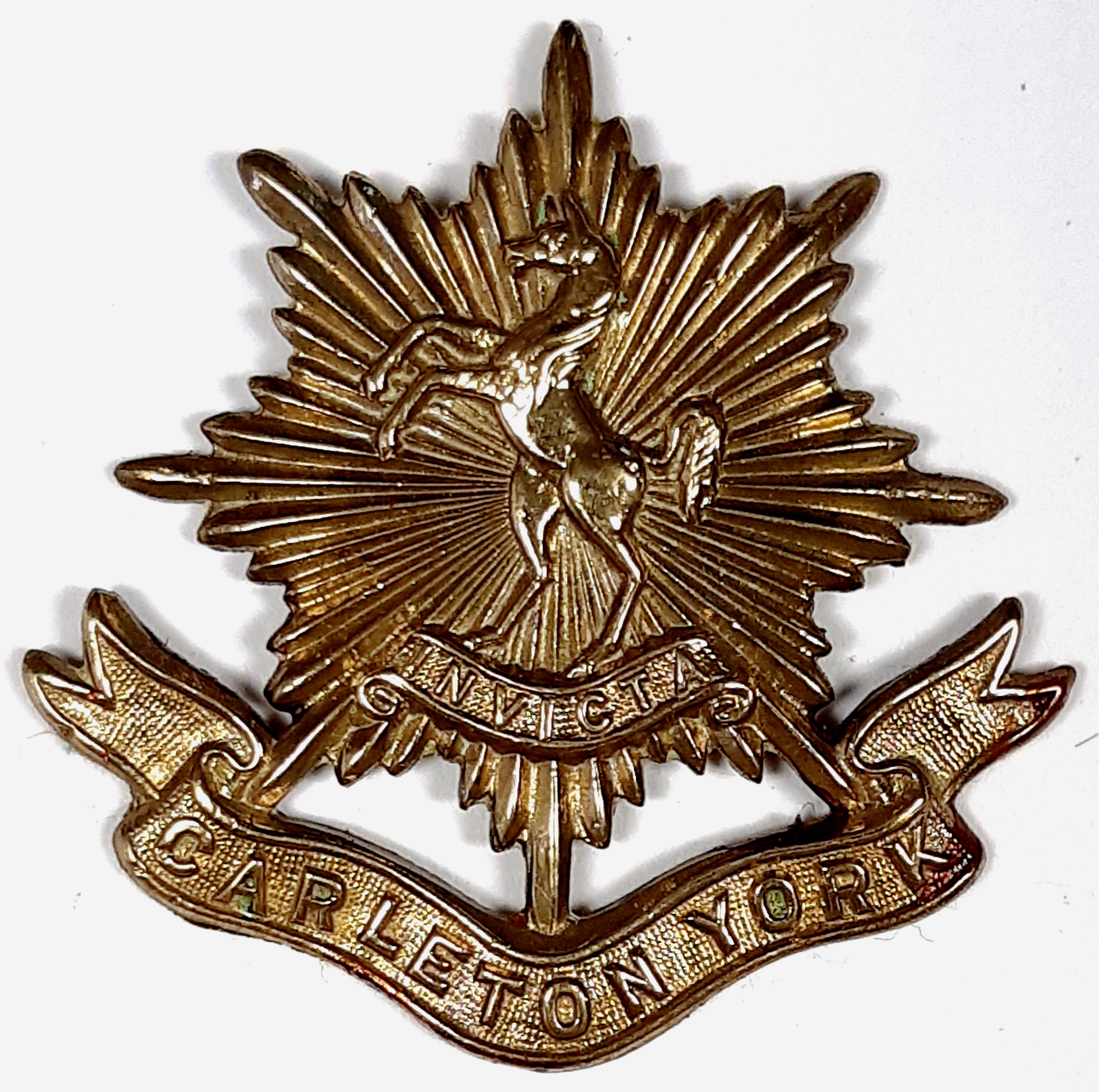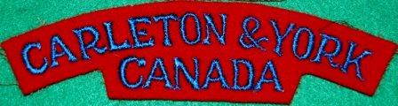 The Carleton and York Regiment was formed in 1937 by the amalgamation of two New Brunswick regiments, the Carleton Light Infantry and the York Regiment, and through them, can trace its origins back the county militias first raised in 1787.  The Carleton and York Regiment mobilized at Woodstock on 1 Sep 1939 as part of the 3rd Brigade of the 1st Canadian Division.   It was redesignated the 1st Battalion, The Carleton and York Regiment, CASF, on 7 November 1940.  It embarked for Britain on 9 December 1939 and landed in Sicily on 10 July 1943 and in Italy on 3 September 1943 as part of the 3rd Infantry Brigade, 1st Canadian Infantry Division. On 16 March 1945, it moved to North-West Europe as part of Operation Goldflake, where it fought until the end of the war. The overseas battalion was disbanded on 30 September 1945. On 1 June 1945, a second Active Force battalion was mobilized for service in the Pacific, under the designation 2nd Canadian Infantry Battalion, (The Carleton and York Regiment), CASF. The battalion was disbanded on 1 November 1945.