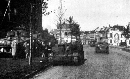 New Brunswick Rangers, 4th Canadian Armoured Division, entering Bergen-Op-Zoom, Holland, 29 Oct 1944.