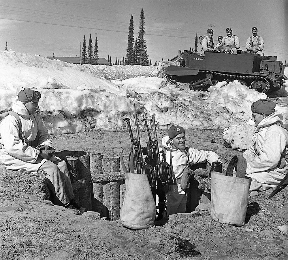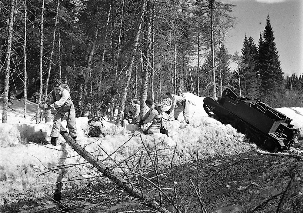 New Brunswick Ranger on a winter exercise, with a Universal Carrier, May 1943.