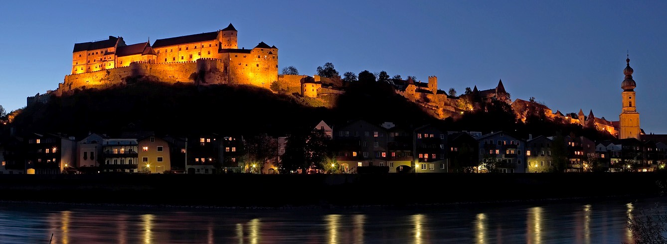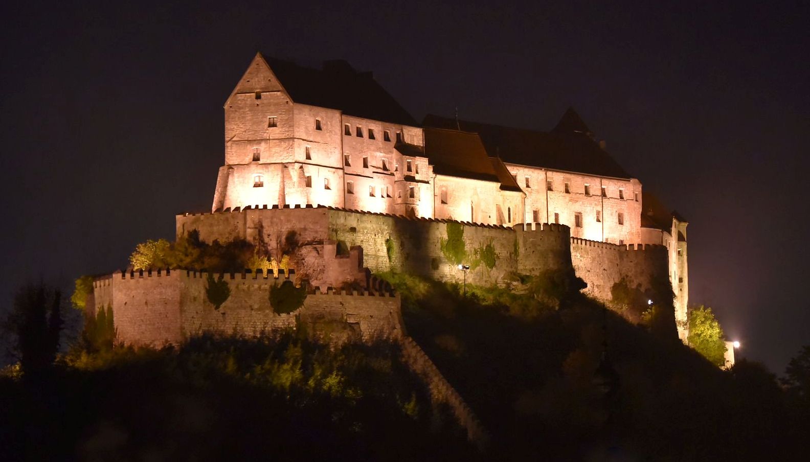Burghausen Castle at night.