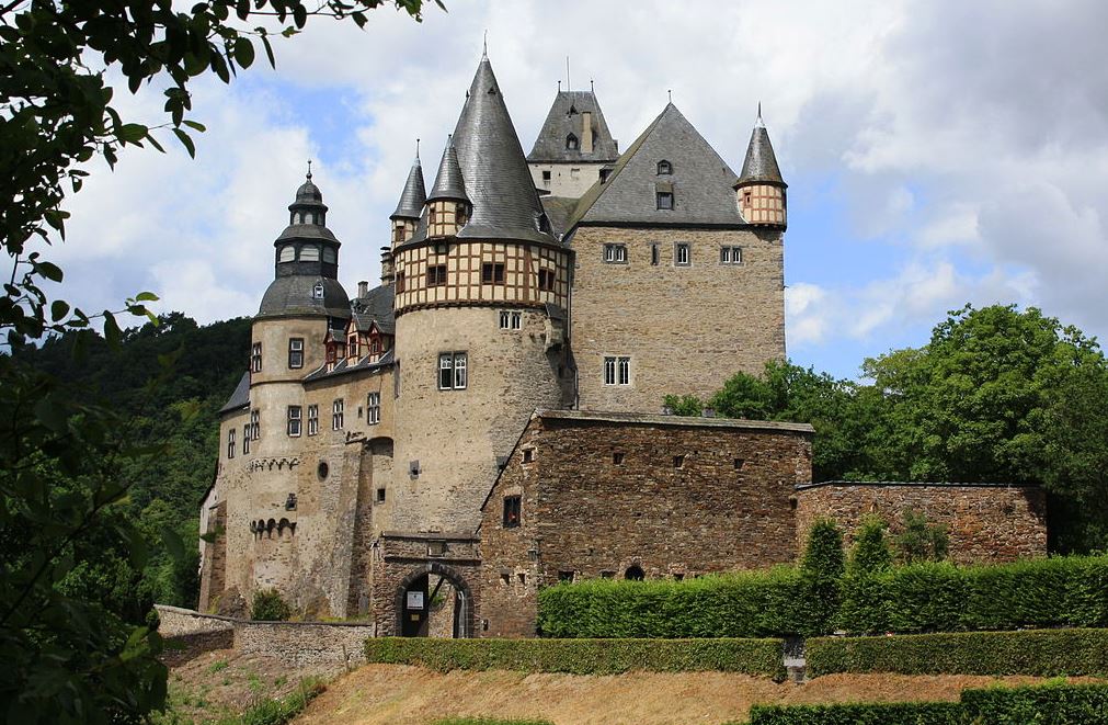 Burg Eltz, near the Mosel River Germany.  Of more than 500 castles in the Rhineland Palatinate region this is one of only three to have survived the many wars and destruction in the region mostly intact since the 11th century. The Eltz family occupied the castle in the 12th century, and then continued to make renovations and additions for centuries afterwards. For this reason it wasn’t fully completed until between 1490 and 1540.  The 80-room castle is still occupied today, and looks much as it would have hundreds of years ago.  The castle is one of the few in the area that survived the Thirty Years’ War.  The French did not destroy the castle thanks to its location, and some skilled diplomacy on the part of the landowners. It is a good walk to get to, up and down a number of hills and forest tracks through a beautiful area and a breathtaking view of the castle.  Burg Eltz is one of the hundreds of castles examined by the author while researching material for the book “Siegecraft”.  Burg Eltz is, in this author’s opinion, the most interesting of them all.