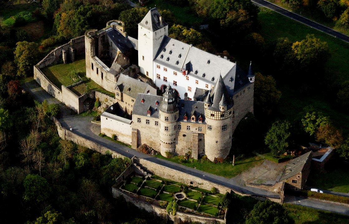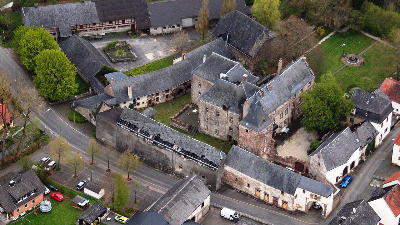 Schloss Bürresheim, aerial view.