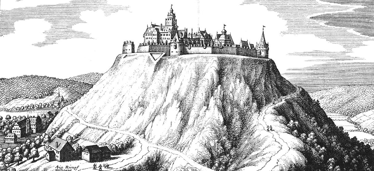 The high house of Breuberg.  Merian engraving from Topographia Franconiae 1648.