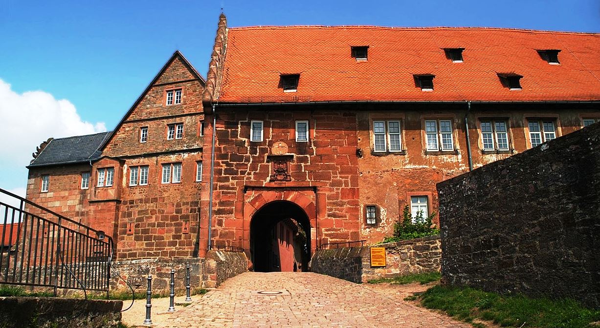In 1446, Count Wilhelm of Wertheim sold Count Philipp the Elder of Katzenelnbogen his share of the castle for 2400 Gulden.  The castle played an important role in territorial policy from Wertheim’s side, which is why the counts endeavored to gradually acquire it in full.  But it was not until 1497 under Count Michael II that this succeeded with the purchase of the last stake.  A little more than 50 years, between 1497 and 1556, the Counts of Wertheim owned the castle completely.  Many construction measures took place during this time, especially the adaptation for the use firearms with the construction of the gun turrets and the cannon platform (Schütt).  New buildings were erected in the castle, such as the Wertheim armory (1528) and parts of the gateway . Breuberg thus became a small Wertheim residence, but also a fortress against the ambitions of larger sovereigns such as the Landgraves of Hesse, the Archbishops of Mainz or the Electoral Palatinate.  The town of Neustadt was founded as a settlement below the castle as early as 1378.
