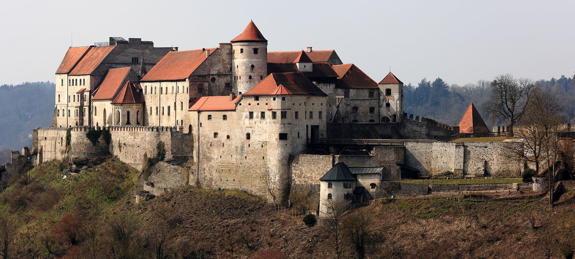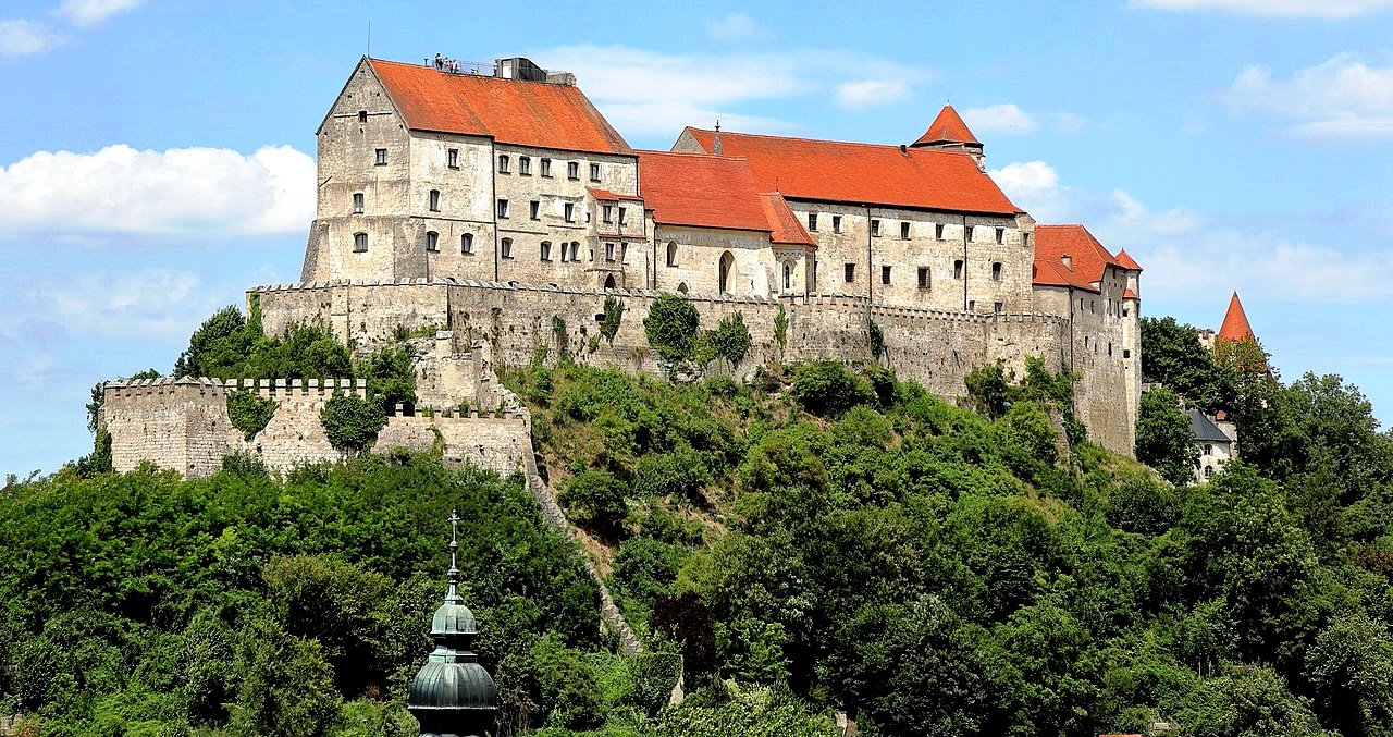 Under the dukes of Bavaria-landshut (1392-1503), the fortifications were extended around the entire castle hill. Beginning with Margarete of Austria, the deported wife of the despotic Duke Henry XVI (1393–1450), the castle became the residence of the Duke’s consorts and widows, and also a stronghold for the ducal treasures.  In 1447 Louis VI, Duke of Bavaria, died in the castle as Henry’s prisoner.  Under Duke Georg of Bavaria (1479–1503) the work was completed and Burghausen Castle became the strongest fortress of the region.