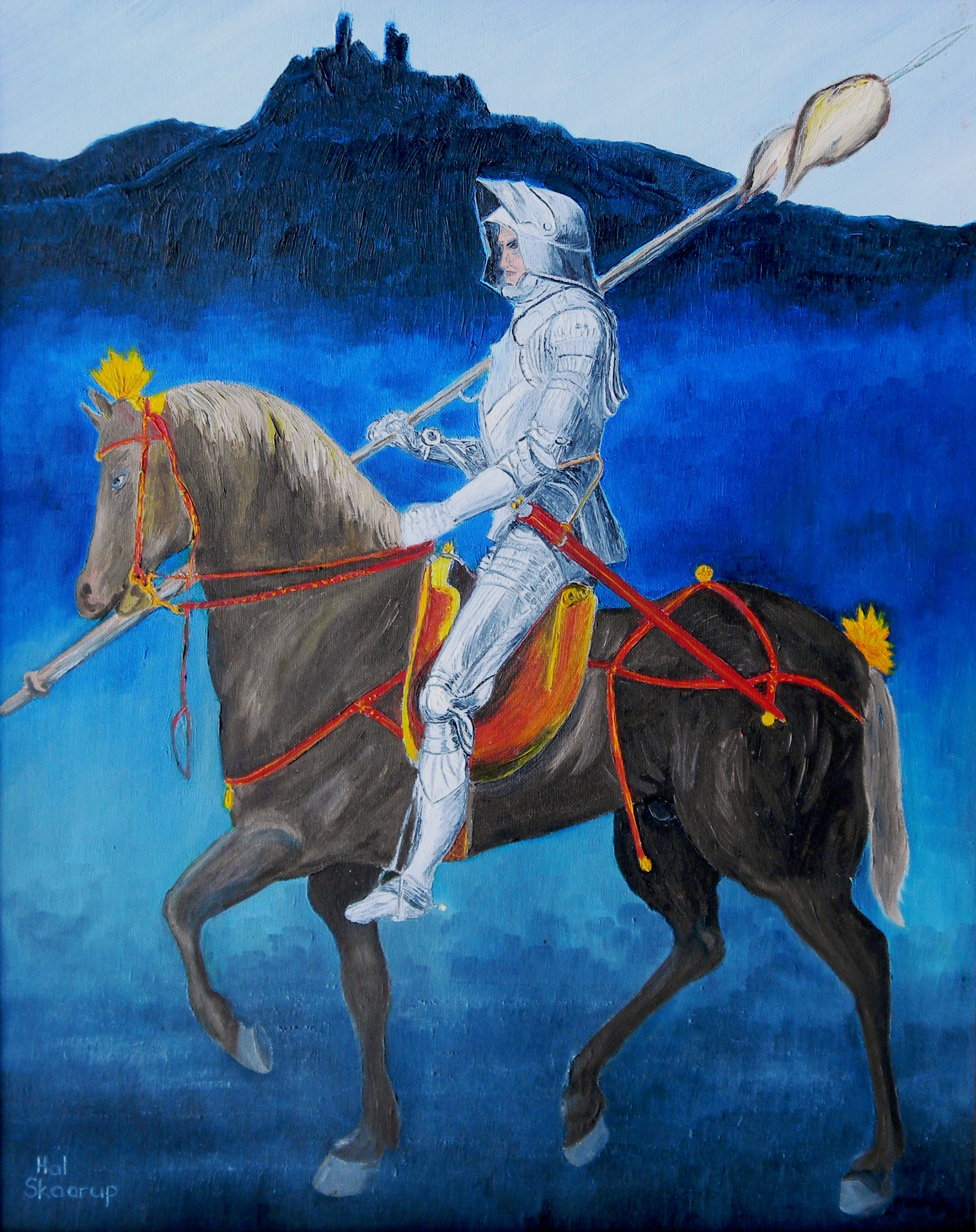 My version of Albrecht Durer’s Medieval German Knight with a castle (also known as a Schloss, Berg or Festung).
