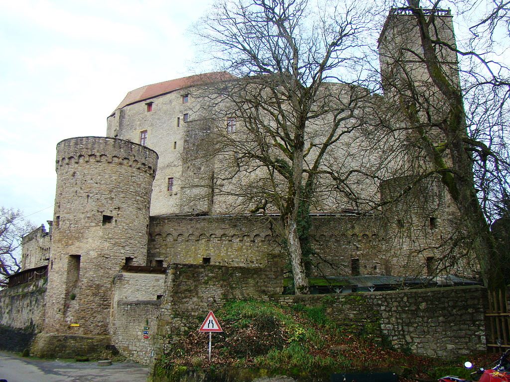 On 1 May 1393, Archbishop Konrad II of Mainz donated a new chapel in Mühlbach, prope castrum nominatum Gutenberg, near Guttenberg Castle. This was the first mention of the castle, which dates from the first half of the 13th century. It belonged to the Lords of Weinsberg as a fief of the bishops of Worms. The von Weinsbergs may have built the castle on behalf of their liege lord. The Bishop of Worms was concerned with securing customs revenue on the long-distance routes in his territory. In a document dated 2 December 1449, the Bishop of Würzburg confirmed that he was the guardian of the sons of the deceased Imperial Treasurer Konrad IX. von Weinsberg sold Guttenberg Castle, along with the associated villages on the Neckar river, including all rights, uses and affiliations for 6000 Rhenish guilders to Hans Rich von Gemmingen. With this purchase, Hans the Rich, became the founder of the Gemmingen-Guttenberg line, which still owns the castle today. With the partition agreement of 1 February 1518, Hans’ grandson Dietrich von Gemmingen inherited the new headquarters of the family. Under him, the castle played a role in the Reformation period, including a providing a place for a religious conference in the Eucharistic controversy of the reformers. There is no evidence of a siege in the Middle Ages, and the castle was not damaged in the German Peasants’ War.