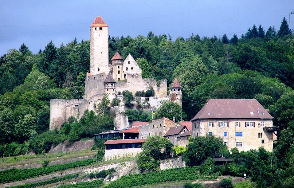 The original castle was built in the 11th century. It is notable as the stronghold of Götz von Berlichingen, who bought it in 1517 and died there in 1562. The castle was bought by Reinhard of Gemmingen in 1612 and remains in possession of the Gemmingen-Hornberg family today. It was uninhabited from 1738 and left to decay until 1825, when it was partially restored. It has housed a museum since 1968. It also housed students from the University of Wisconsin-Stevens Point College of Natural Resources for an annual summer exchange program. (G. H. Bidermann: Burg Hornberg, Wohnsitz des Ritters Götz von Berlichingen, Rüstzeugschau 1980. Journal Verlag Schwend GmbH, Schwäbisch Hall 1980) Visited 9 April 1990.
