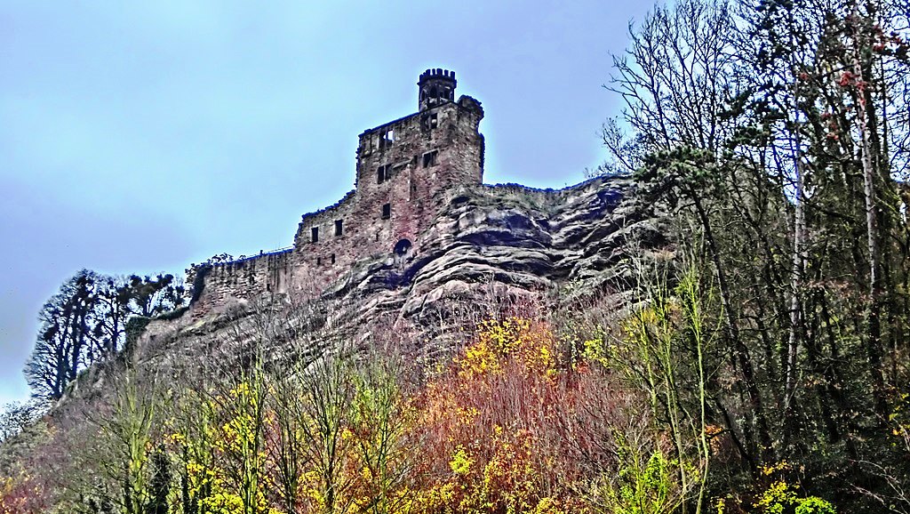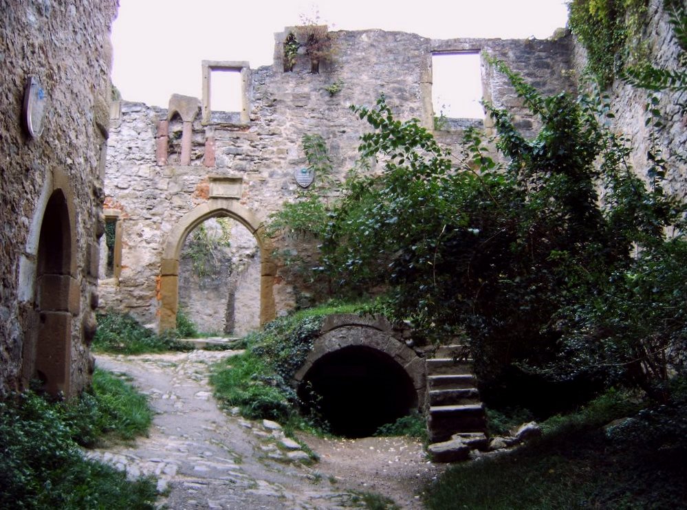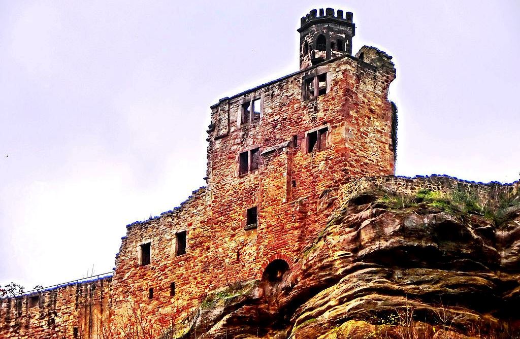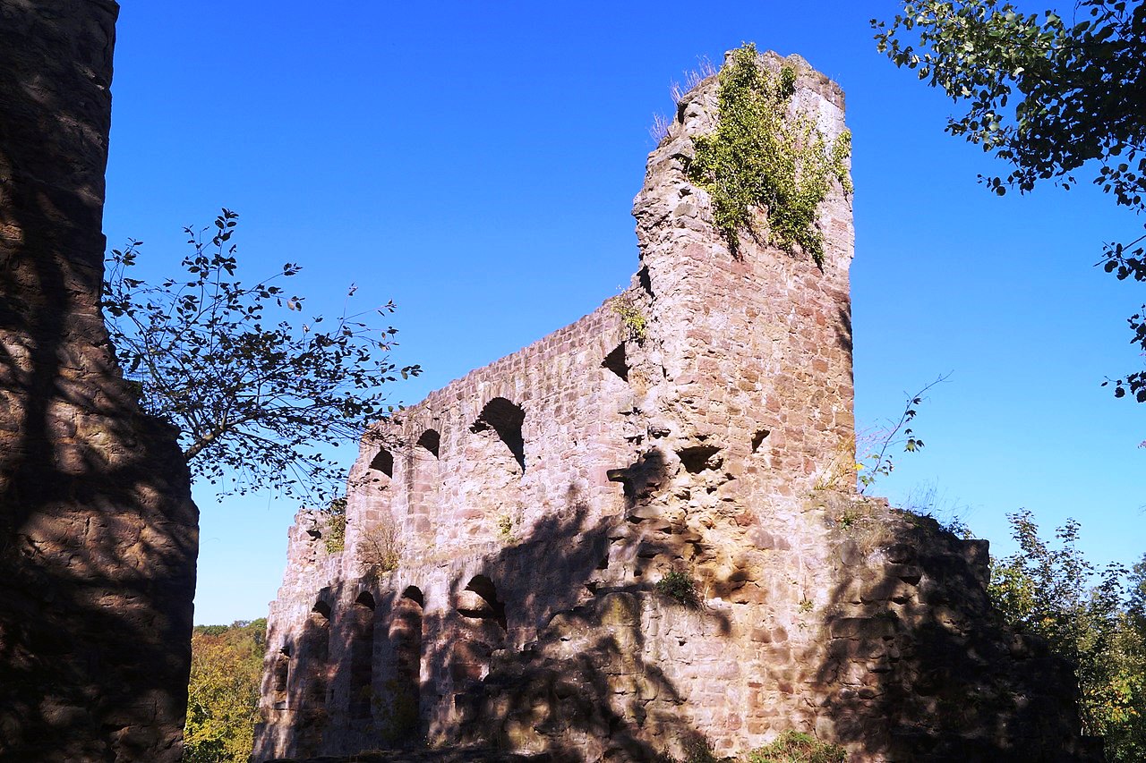 Neuleiningen: Burg Neuleiningen is a castle ruin on the eastern edge of the Palatinate Forest in the state of Rhineland-Palatinate in the Bad Dürkheim district. It was built in 1238-41 by Count Frederick III of Leiningen. The French destroyed it in 1690 and it has lain in ruins since that time. The castle is located on a foothill of the Haardt on the northeastern edge of the Palatinate Forest. Its eponymous village is grouped around the castle, high above the left bank of the Eckbach at an elevation of about 300 metres above sea level. Near the castle is the Old Vicarage (Alte Pfarrey), which was first recorded in 1524 and which houses a gourmet restaurant today.