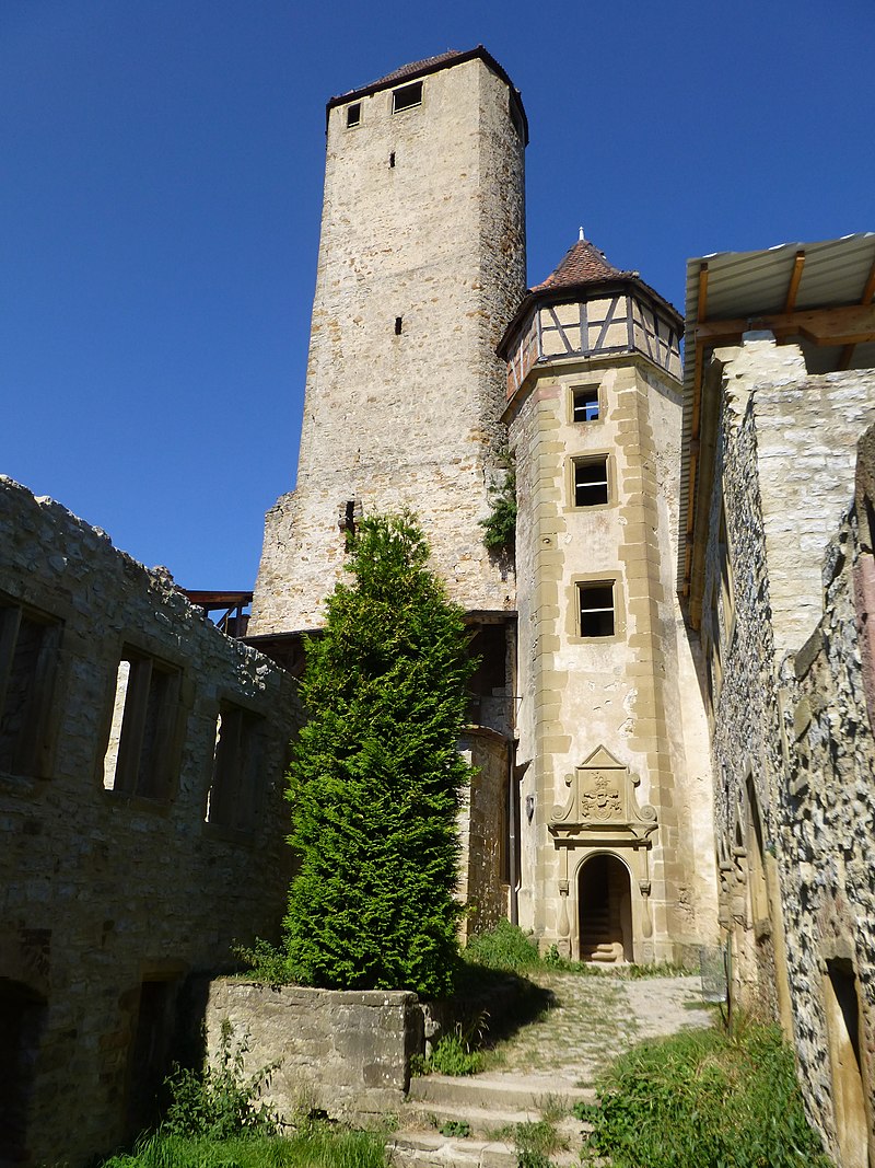 Burg Hornberg, keep, stair tower, and on the right the Palas of the Lords of Berlichingen.