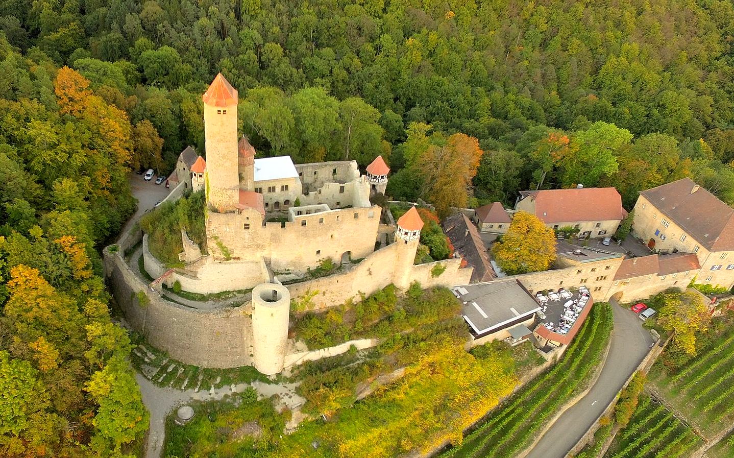 Burg Hornberg, aerial view.