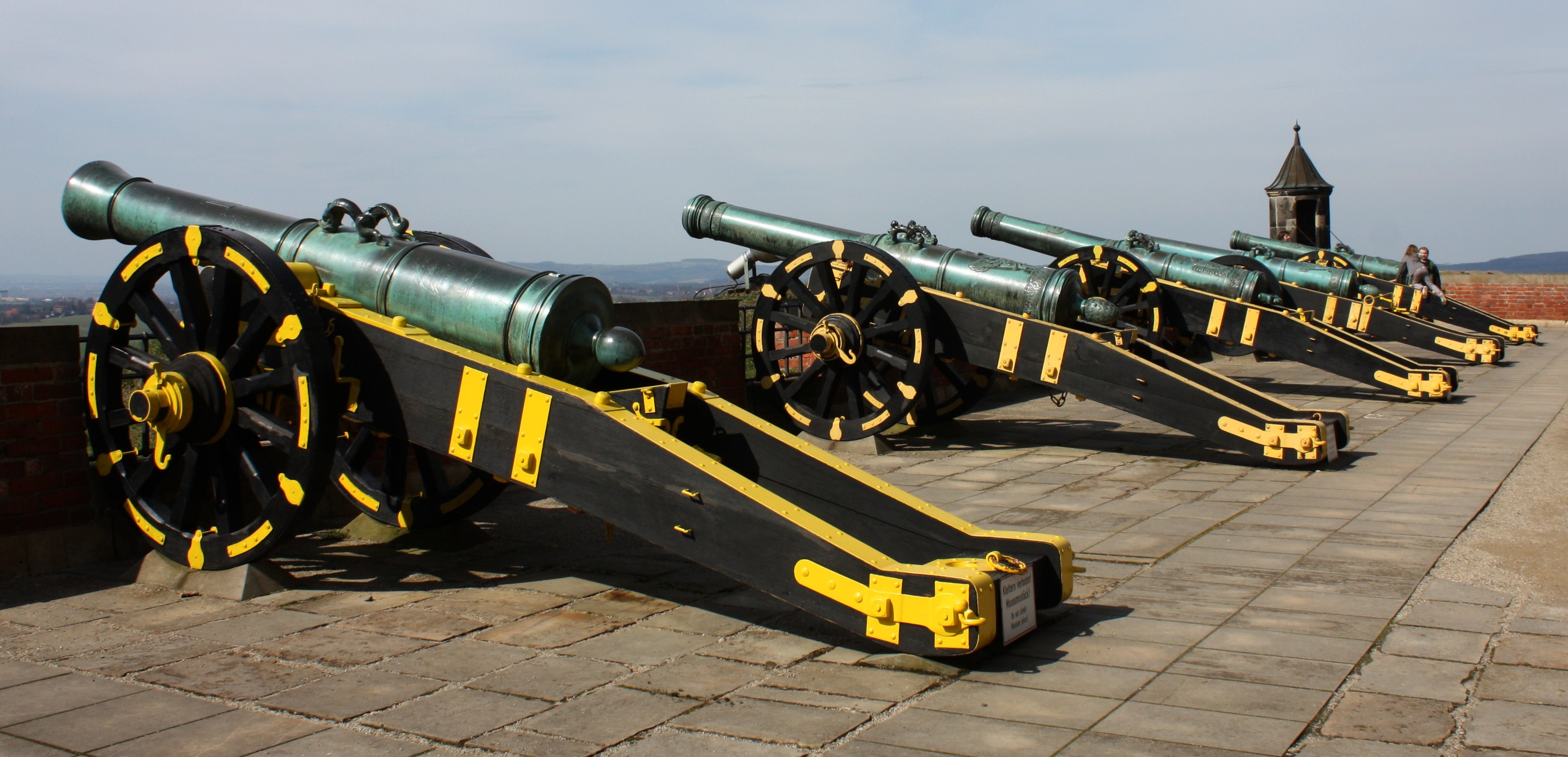 Quarter cannons on gun carriages. Kartouwes in front of the John George Bastion on the Königstein Fortress.