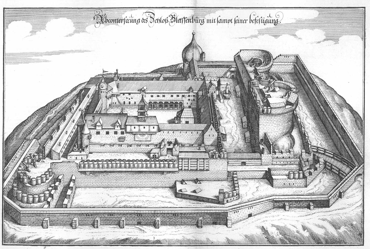 Plassenburg, engraving, Mattäus Merian, 1656.