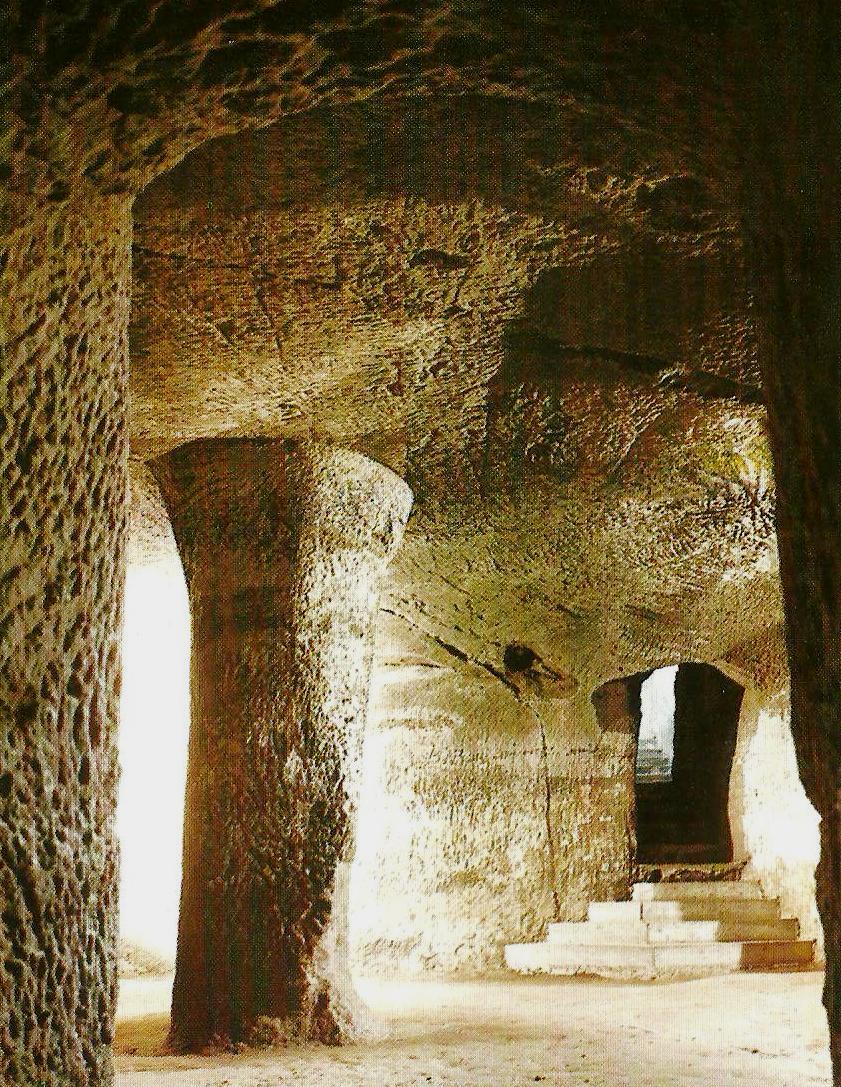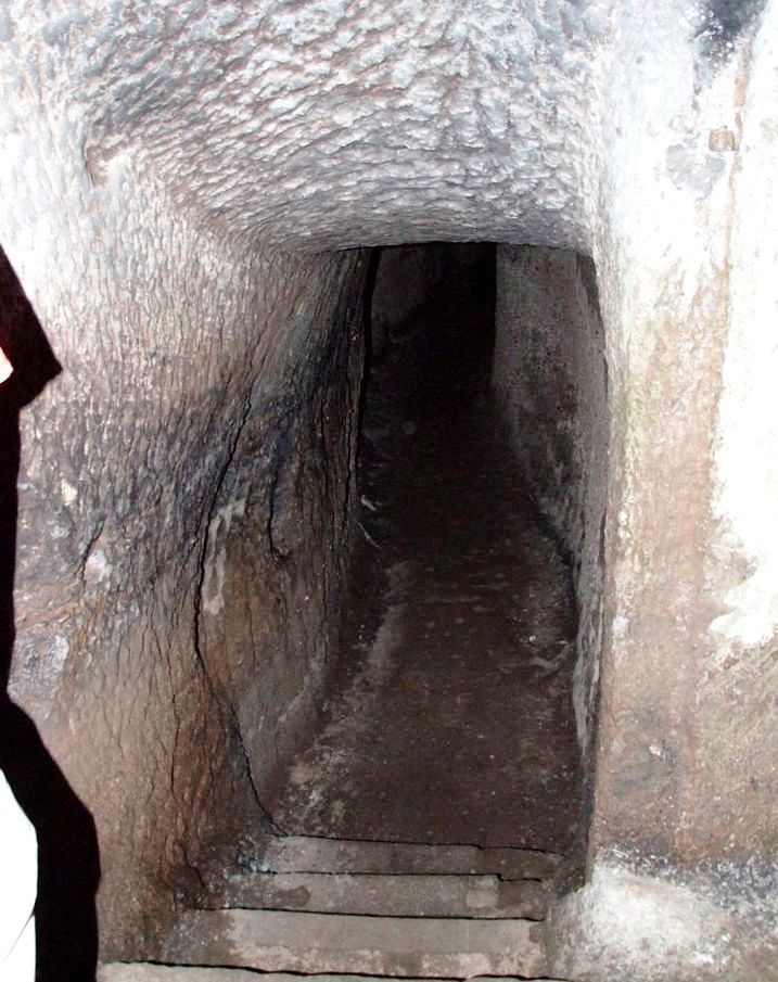 Rock cut passageways leading under Berwartstein. Carved out of the cliff and accessible even today are corridors and passageways which used to be part of the large underground defence network. Although not accessible today, there was once a tunnel from the castle to the village below. These tunnels were hewn out with hammer and chisel and partly dug through the soil. One memory I have from those days, is that the guide took a group of us through an underground tunnel that wound some distance from the entrance to the interior storage chamber. The guide was the only one with a flashlight, so we all joined hands in a chain link to go through the dark path (cobwebs and all). On reaching the other end we came into a room dubbed “casemate II”, with a central pillar holding up the ceiling – it had been carved out of the living rock!