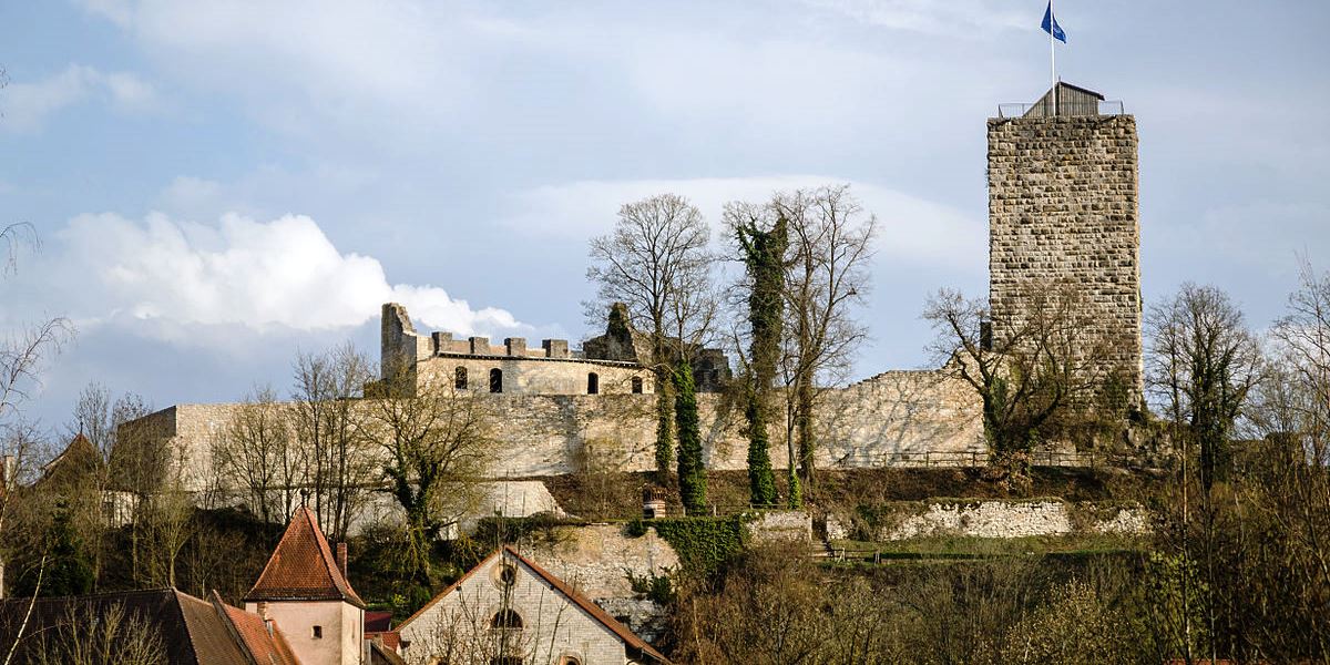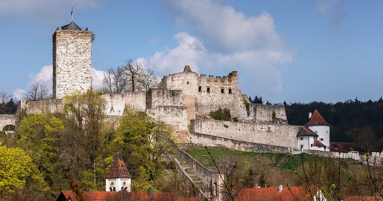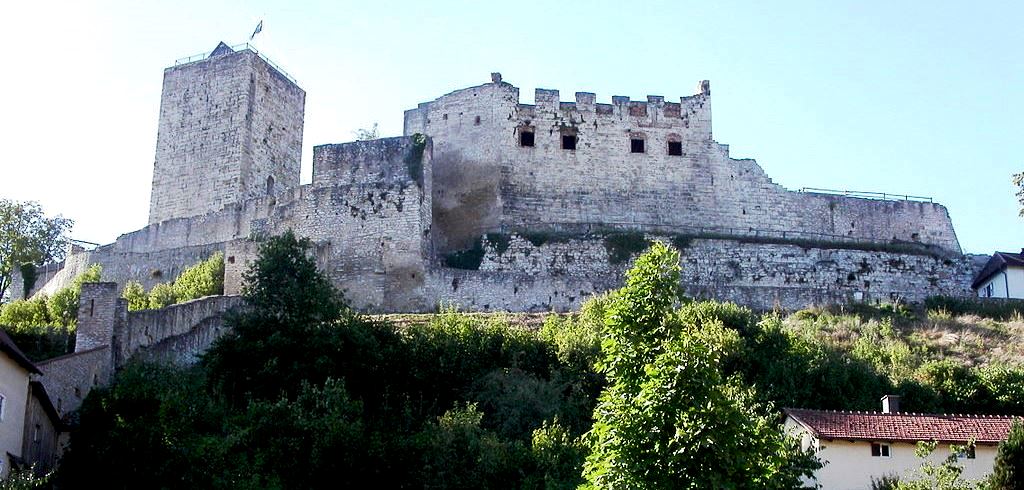 Burg Pappenheim (Burg Kalteneck) was the scene of numerous confrontations of the dukes of Bavaria and King Henry Raspe against the imperial forces in the 13th Century. Battles andconflict circled the castle in several waves until the 14th and 15 Century. In 1633, during the Thirty Yearsè War, the castle and town were conquered and destroyed by Swedish regiments. In 1703 during the Spanish war of succession, Pappenheim was again looted, this time by French troops and the castle was partially destroyed after bombardment. During the War of the Spanish Succession, the castle was shelled for two days by French troops, until it was finally captured. Since then the castle has been uninhabited. Pappenheim is a town in the Weißenburg-Gunzenhausen district, in Bavaria, situated on the Altmühl river.